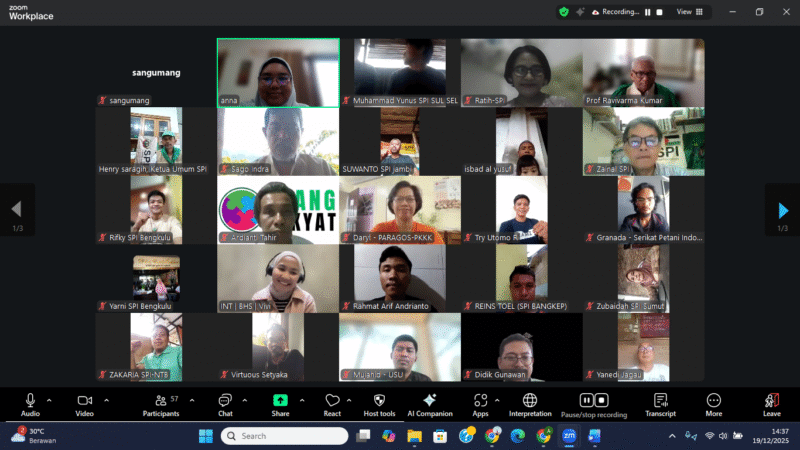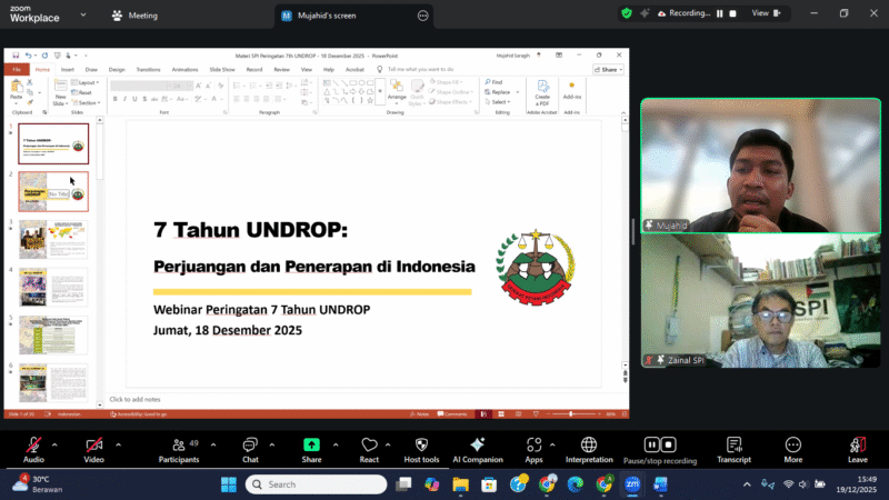 Dalam rangka memperingati tujuh tahun UNDROP tersebut, Serikat Petani Indonesia (SPI) menggelar webinar internasional bertajuk “Peringatan 7 Tahun UNDROP: Berbagi Perjuangan dan Penerapan UNDROP” pada Jumat, 19 Desember 2025. Webinar ini menghadirkan berbagai perwakilan organisasi petani dari berbagai negara untuk berbagi pengalaman perjuangan, tantangan, serta implementasi UNDROP di tingkat nasional masing-masing.