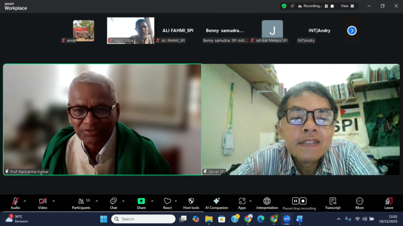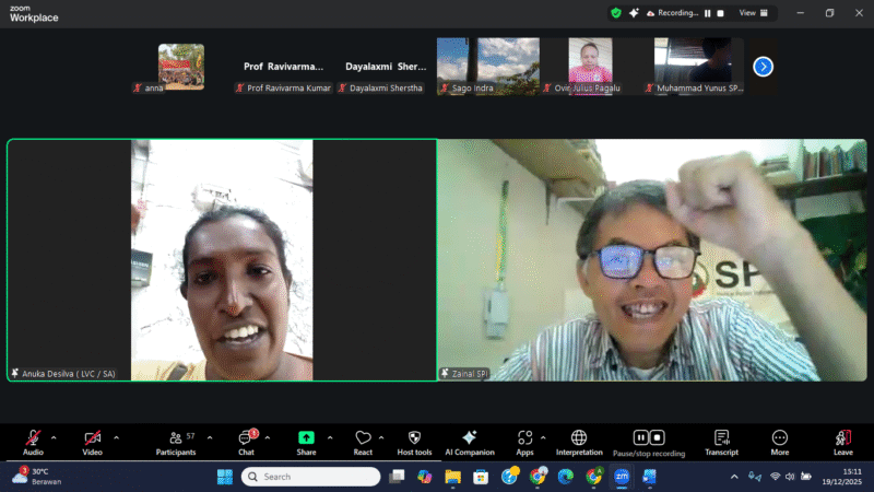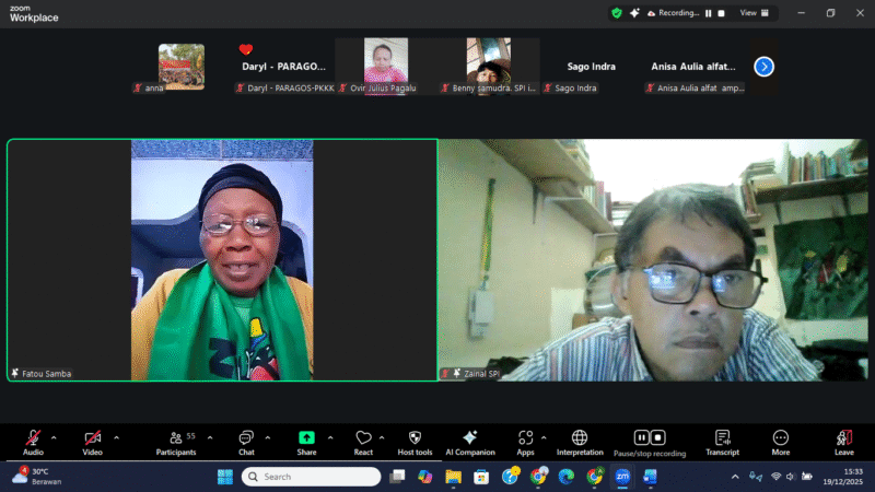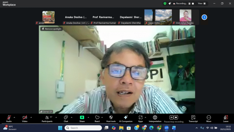 Menutup rangkaian diskusi, moderator webinar Zainal Arifin Fuat menegaskan bahwa berbagai persoalan krusial yang dihadapi petani di sejumlah negara memiliki benang merah yang sama, terutama terkait hak atas tanah. Ia menyebutkan bahwa isu tersebut tidak hanya terjadi di India dan Sri Lanka, tetapi juga dialami oleh petani di Gambia dan Indonesia, serta berkaitan erat dengan persoalan agroekologi, krisis iklim, dan hilangnya keanekaragaman hayati.